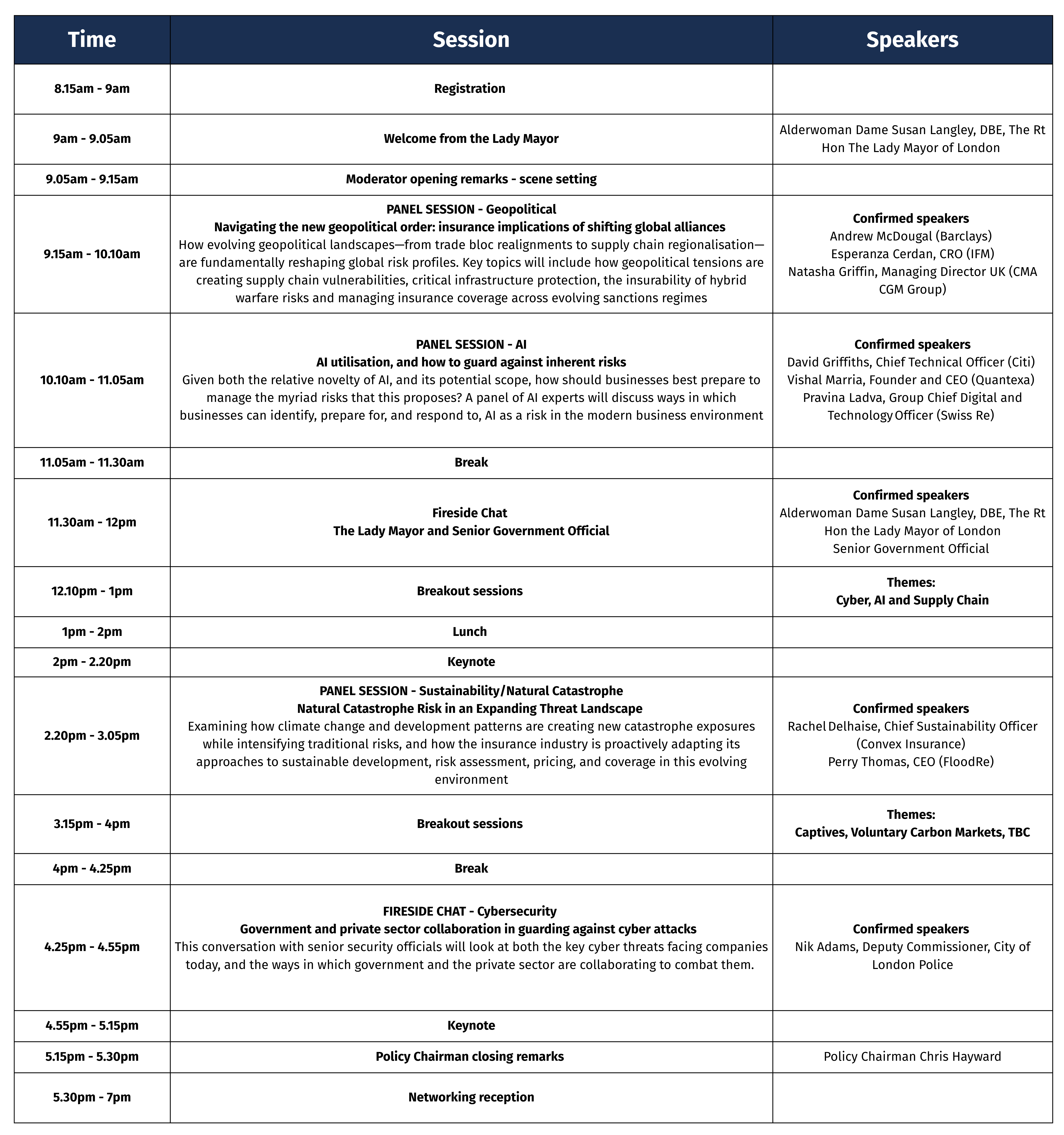 Registration will open from 8.15am and the formal proceedings will close at 5.30pm. A networking reception will follow. Please note that the agenda timings are subject to change. Global Risk Summit Speakers Speakers Global Risk Summit Sponsors Sponsors Register your interest now Global Risk Summit Global Risk Summit